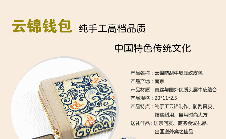 宜貢坊 南京云錦錢包防刮真皮云錦錢包中國風(fēng)特色工藝禮品商務(wù)禮盒