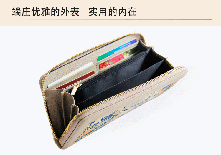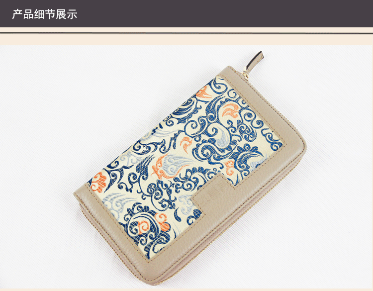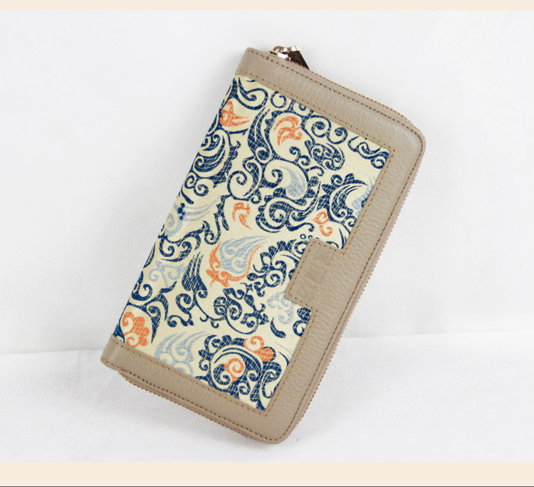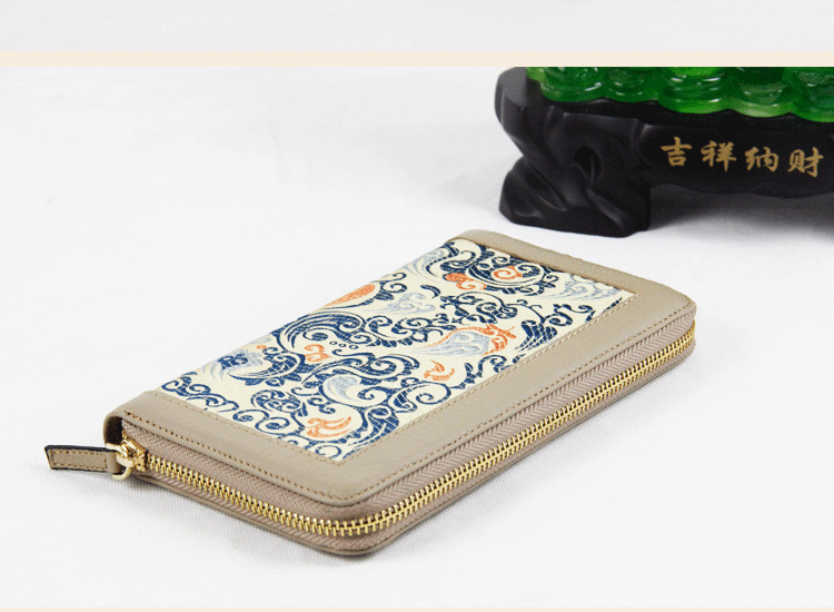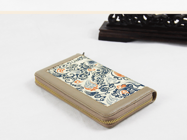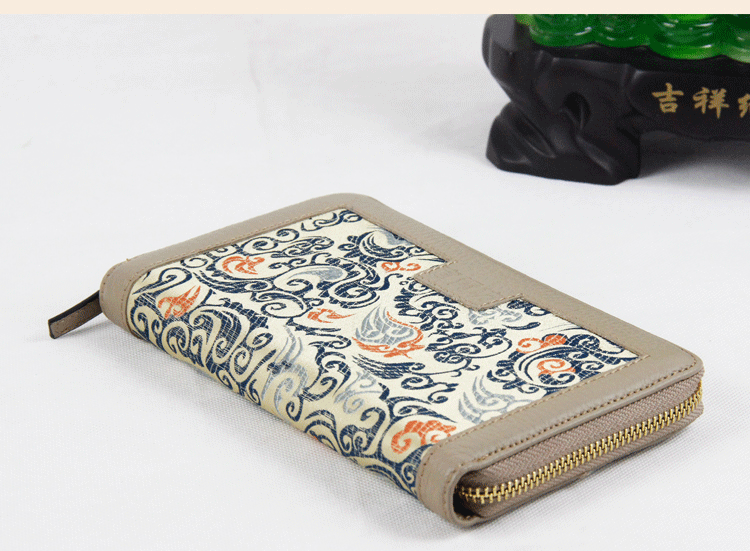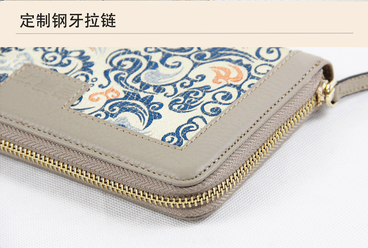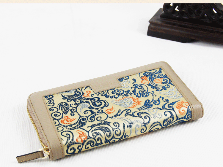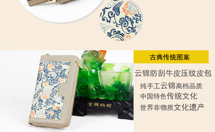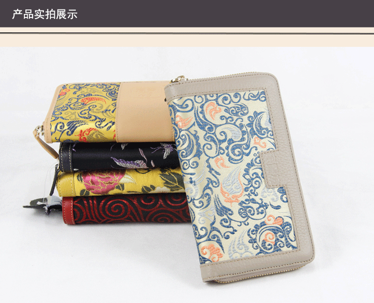 手工云錦真皮錢包