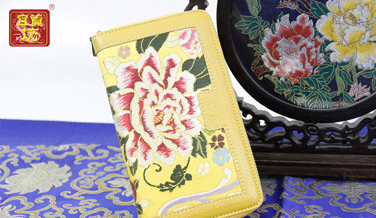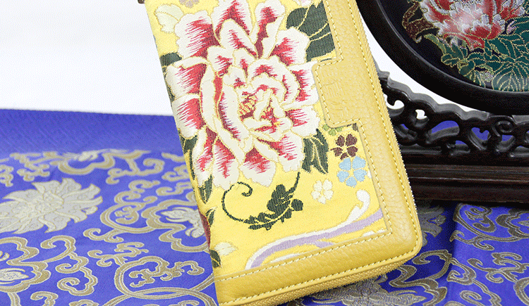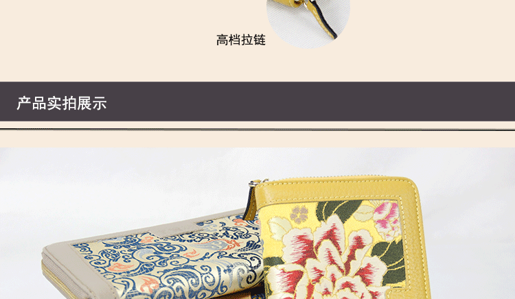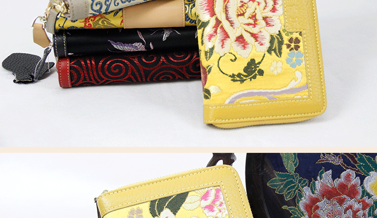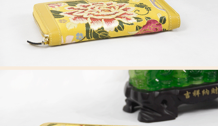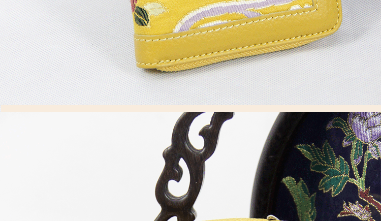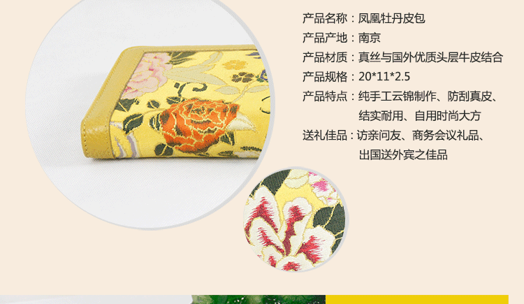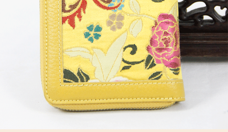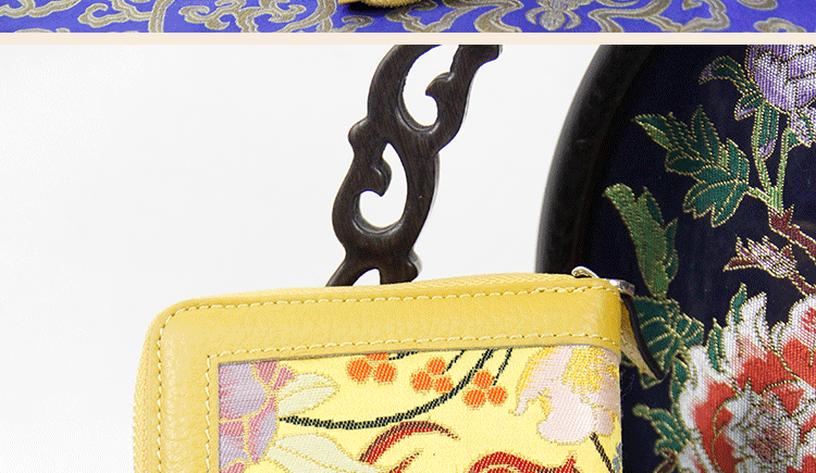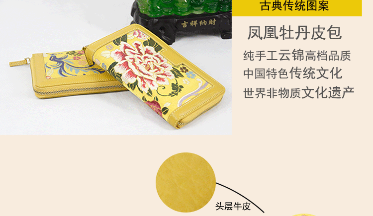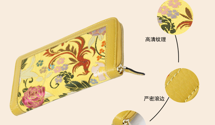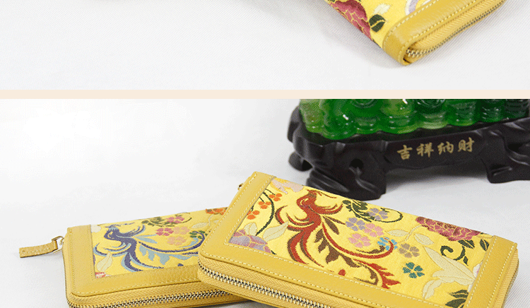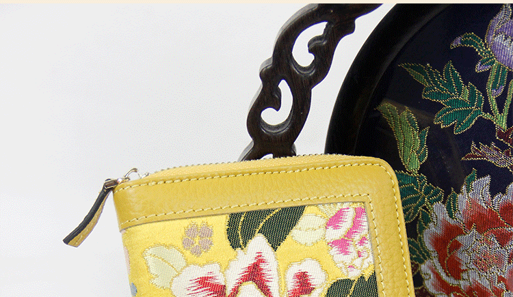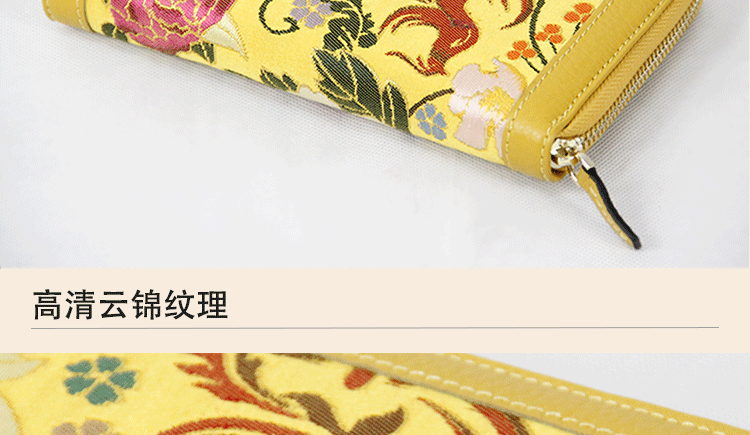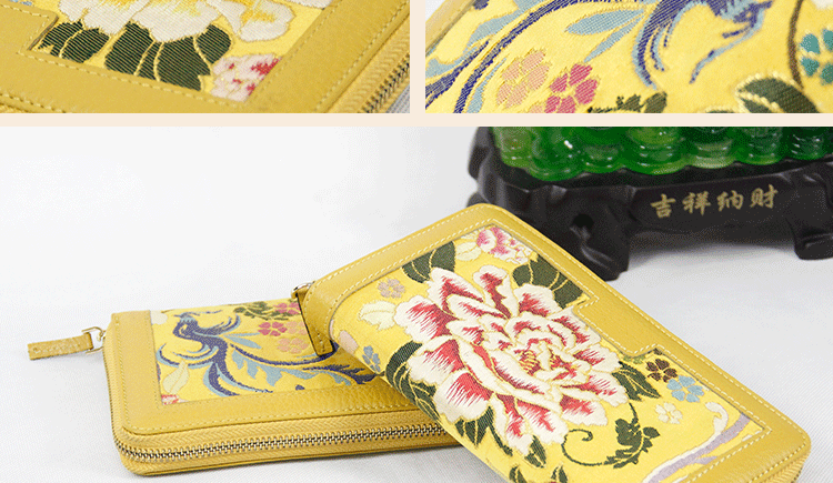 手工云錦真皮錢包