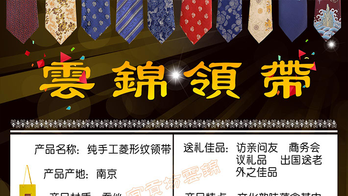 宜貢坊 南京云錦領(lǐng)帶 云錦純手工菱形紋領(lǐng)帶 中國風(fēng)特色工藝禮品商務(wù)禮盒