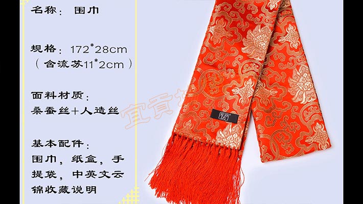 宜貢坊 南京云錦圍巾富貴花云錦圍巾中國(guó)風(fēng)特色工藝禮品商務(wù)禮盒